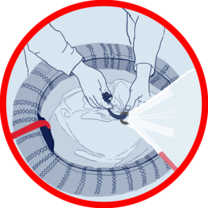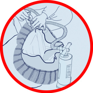 Hajtogassuk ki a snuffer csövét. Nyissuk fel a Neopren fedést és kapcsoljuk a pumpát a befújó szelephez. Pumpáljuk fel a snuffert 6PSI nyomásra.